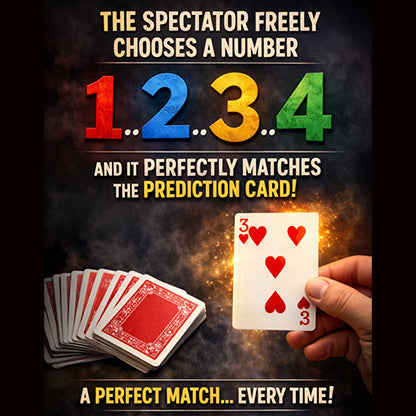 The spectator freely names a number, convinced they are deciding the outcome of the effect. The magician then removes the corresponding card... and miracle: it is exactly the same as the one printed on the back of the card the spectator has been holding since the start.
