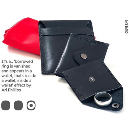 Beautifully crafted leather pouches with a deceptive method for loading the ring, coin or any small object into a pouch, inside a pouch, inside a pouch... and even inside a sealed envelope too!