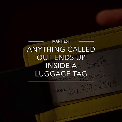 ONLINE PERFORMANCES - During lock down a few select magicians have performed this routine. During their show they have their performance case in view with the tag. They say they can't wait to get back to doing shows around the world and ask several questions to their audience of where they would like to see them live. Everything called out appears on the label INSIDE the luggage tag. This is the perfect ONLINE routine for the virtual magician.
