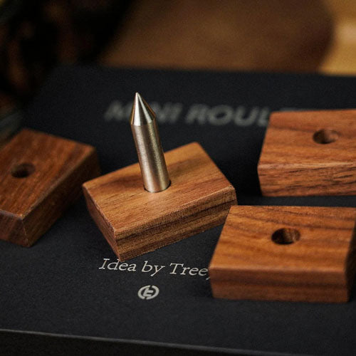 Crafted from sturdy and durable North American black walnut, the Mini Roulette is of exceptional quality. It comes with two stainless steel spikes for a variety of performance options.