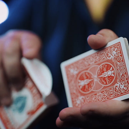 The package comes with everything you need to perform, including our custom production card boxes (made for Bicycle cards), and a complete download with Matthew Wright. You also receive six stickers, giving you the flexibility to make red or blue Bicycle gimmicks.