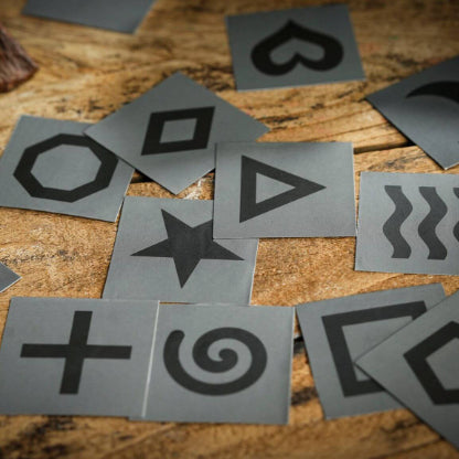 - Grey patterned square paper sheets ×15 (12 with symbols, 3 blank)