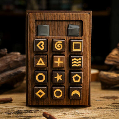 Each unit is crafted from premium North American black walnut, with a warm texture and elegant grain. The set includes waterproof prediction papers and gold-painted wooden dice, all showcasing true artisanal quality.