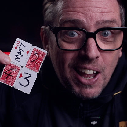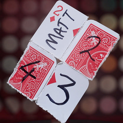 Without any complicated sleights , difficult palms or any other sneaky business outside of a basic magicians skill level the card instantly and visually joins back together in the most unexpected and impossible way. The card is a mismatched design front and back. The torn edges can been seen on the outside edges of the card. And all four signatures are STILL ON the card.
