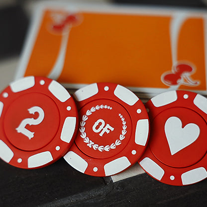 Slowly, you turn each chip over to reveal the exact name of their thought of card printed across the back of the three poker chips!