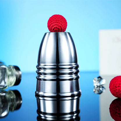 You perform a charming Chop Cup routine using a sleek, stainless-steel cup. Balls vanish, appear, and jump impossibly between the cup and your pocket. Everything feels comfortably familiar... until the finale.