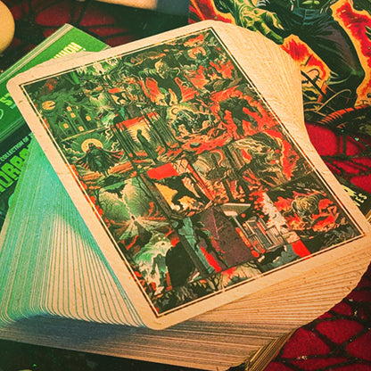 Packaged as “Volume 3: Horror Originals,” the deck masquerades as a rediscovered collection of lurid comic book covers by the fictional pulp artist Stefan Mararu.