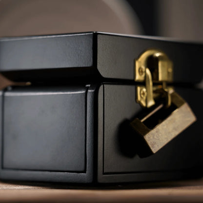 Crafted from beechwood and adorned with a deep, mysterious black lacquer finish, the Music Box is enhanced with laser-etched borders that add to its enigmatic charm. This exquisite piece allows you to transport rings, coins, cards, and any small objects you can imagine, turning each performance into a magical experience.