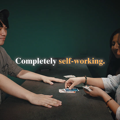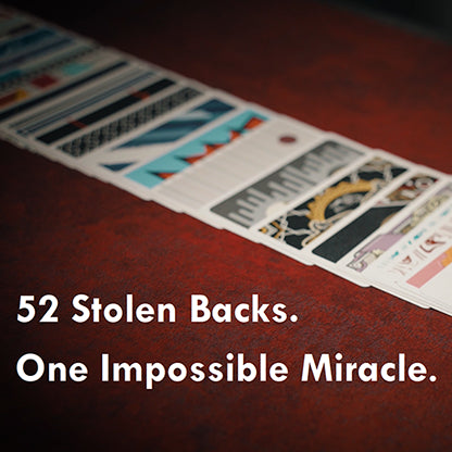 The spectator inserts two cards of the same value into a deck of completely different backs. Incredibly, both land beside cards with matching backs-though slightly different in shade. Maybe just a coincidence?